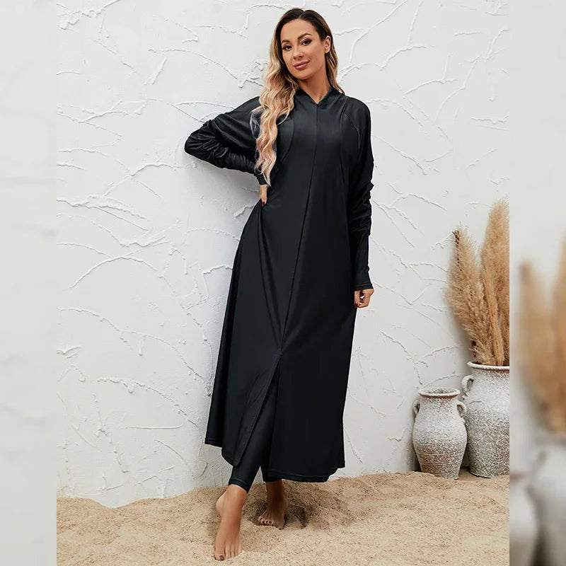 Découvrez notre burkini trois pièces, conçu pour les femmes musulmanes en quête de style et de confort. Cet ensemble complet offre une couverture intégrale avec manches longues et cagoule, idéal pour la baignade en toute sérénité. Le tissu haute performance assure une protection solaire optimale tout en épousant élégamment votre silhouette. Parfait pour la plage, la piscine ou les activités aquatiques, ce maillot de bain respecte vos convictions tout en vous permettant de profiter pleinement de l'eau. Qualité premium et design intemporel pour une confiance absolue.