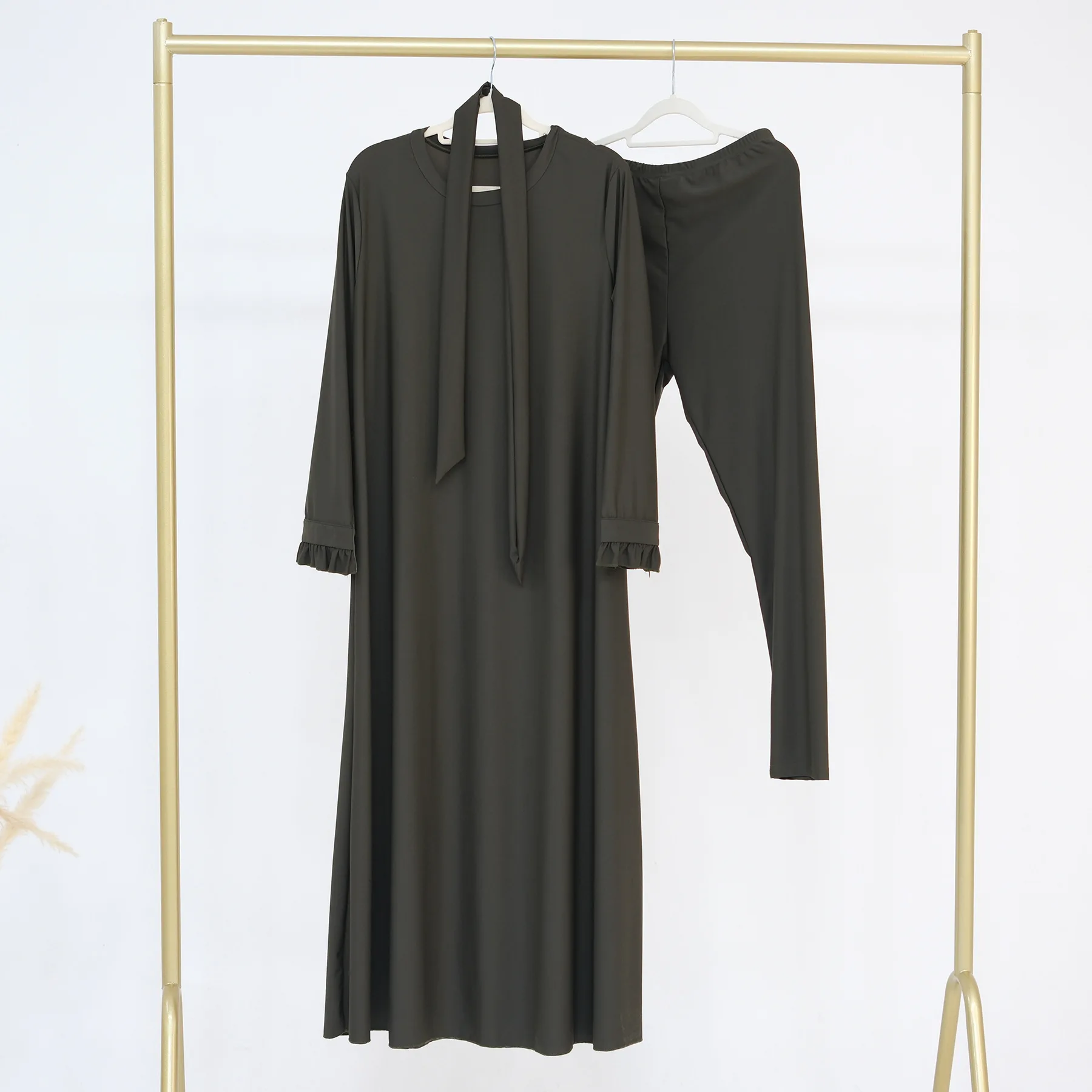 Découvrez notre burkini traditionnel, alliant élégance et modestie pour une expérience de baignade en toute confiance. Cet ensemble complet comprend une robe et un pantalon conçus dans des matières fluides et confortables, parfaits pour les activités aquatiques. Respectueux des valeurs islamiques, ce maillot de bain offre une couverture complète sans compromis sur le style. Idéal pour la plage, la piscine ou les loisirs nautiques, il combine praticité et raffinement. Sentez-vous libre et sereine dans ce vêtement de baignade pensé pour vous.